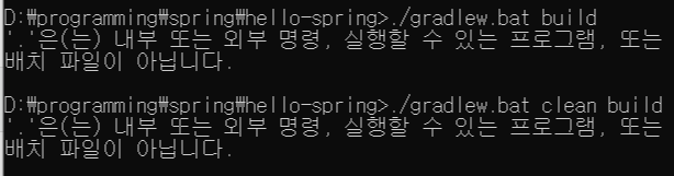 윈도우 운영체제에서 $ ./gradlew.bat build를 치면 빌드가 된다는 데 나는 계속 해당 명령어가 실행할 수 없다고만 떠서 곤란함을 겪었다. ($ ./gradlew.bat clean build 또한 실행되지 않았다.)