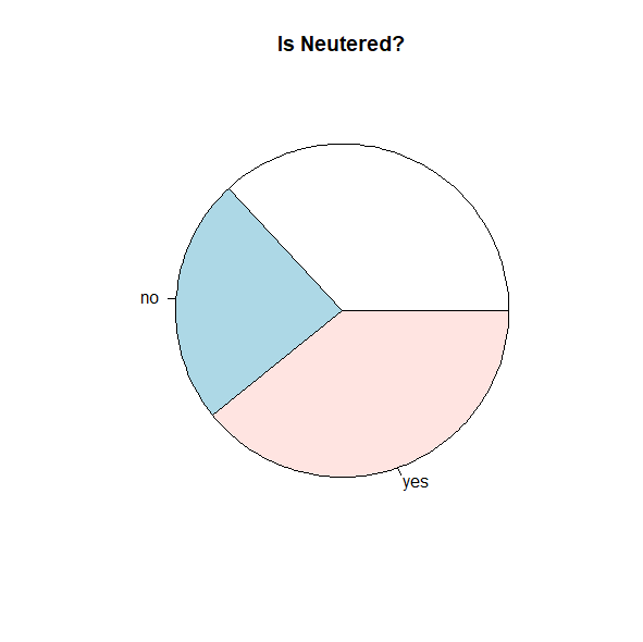 pie(table(dogs$color), main="Color of Adopted Dogs")