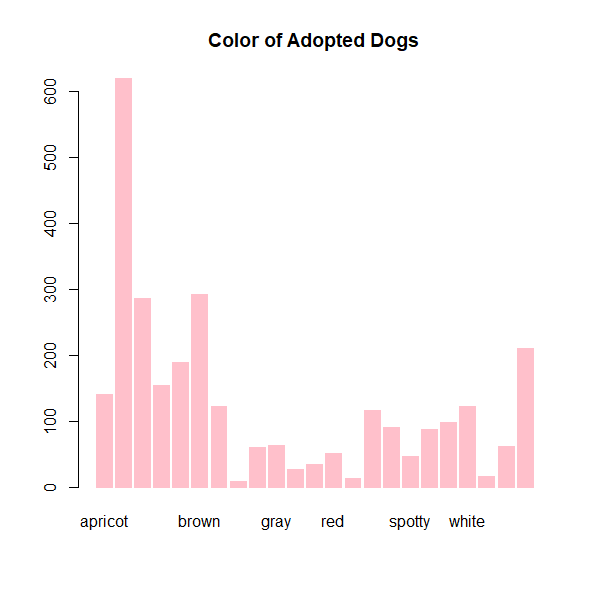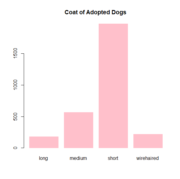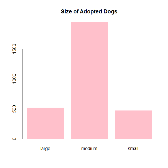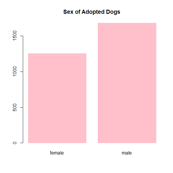 barplot(table(dogs$sex),main="Sex of Adopted Dogs", col="pink", border="pink")