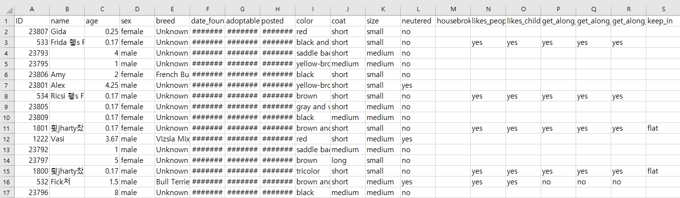 - 참고 : '[빅데이터/R] 데이터 분석해보기 1 - Adoptable Dogs' 수정하기 (tistory.com)