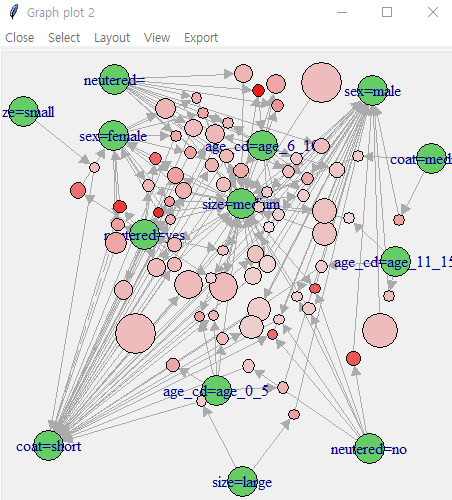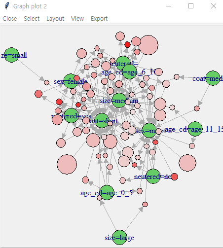 - 범주형 데이터 sex, coat, size, neutered와 연속형 데이터 age 총 5개의 변수를 사용하려 한다.