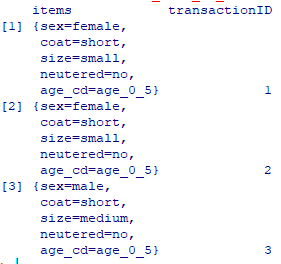 cust_dogs_ar_tr<-as(cust_dogs_ar, "transactions")