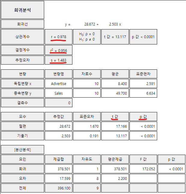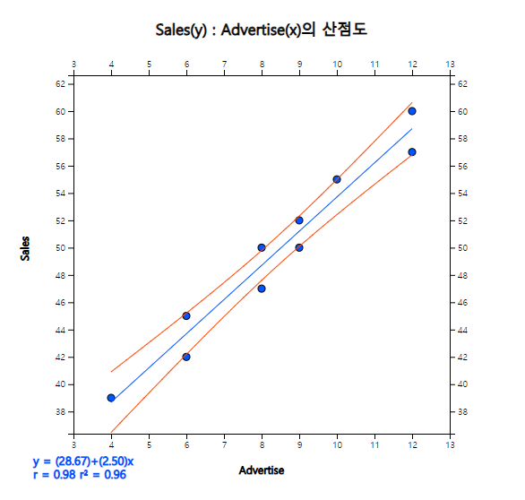 r (correlation coeff 상관계수) -> 0.8 이상 적정