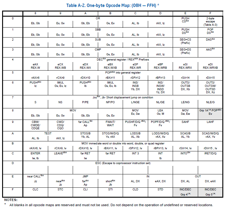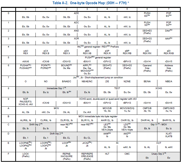 One-byte Opcode Map
