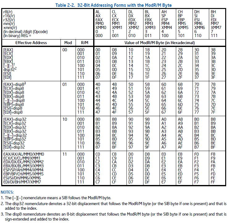 32-Bit Addressing Forms table