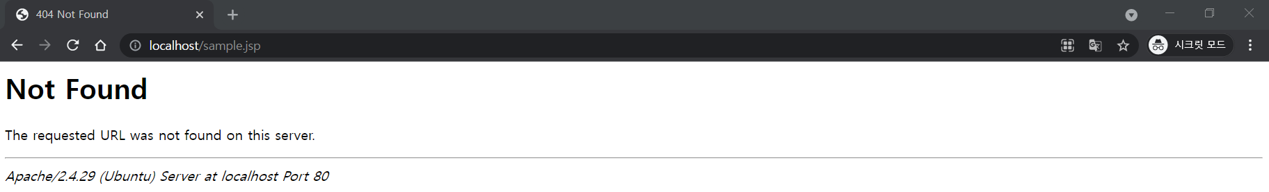 http://localhost/sample.jsp 로 연결 시 404 에러가 발생한다.