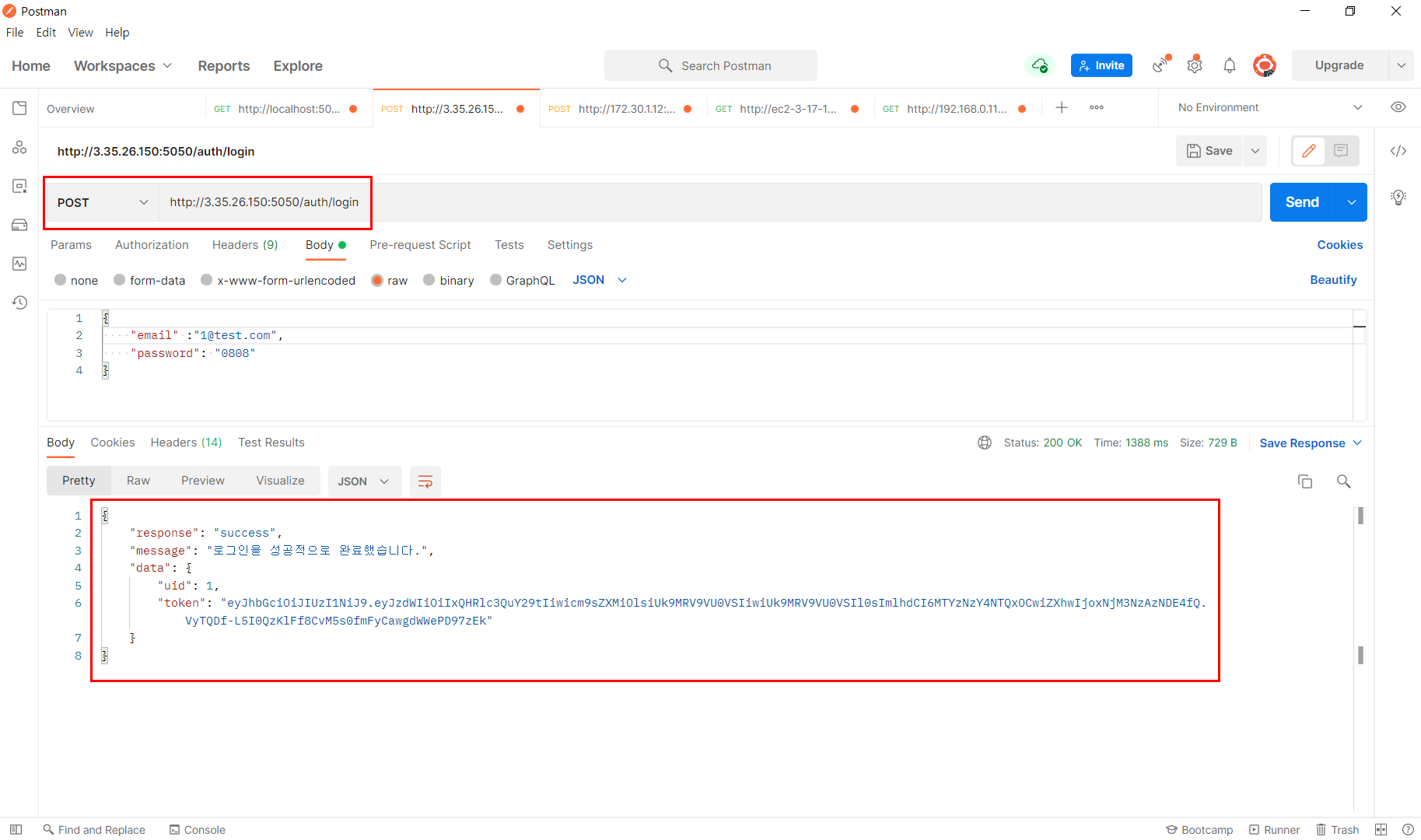 다른 api도 요청을 테스트 해보았는데 모두 동작하였다.