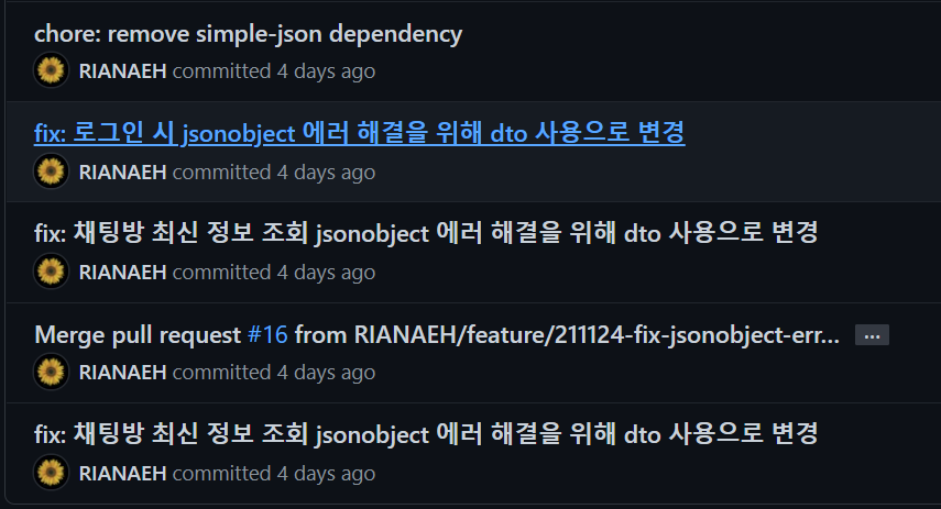 - chore (maintain) : 빌드, 패키지 매니저 설정을 변경한 경우