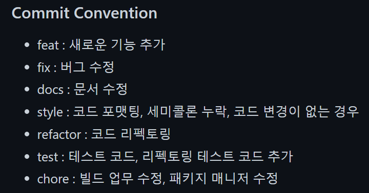 원래는 커밋을 정말 아무 생각 없이 해오다가 mnm 프로젝트를 진행하면서 같이 진행하는 친구가 Commit Message Conventions를 정해서 같이 적용해보자고 하여 이에 맞추어 적용해보았다. (땡큐><)