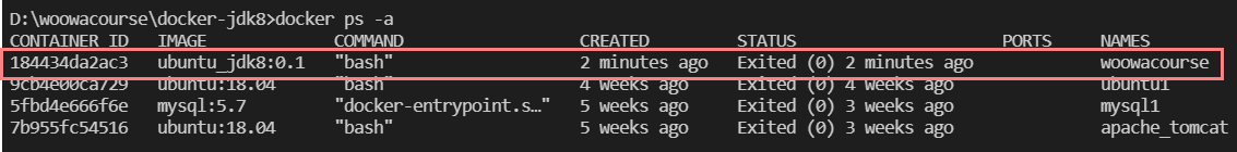 D:\woowacourse\docker-jdk8> docker run -d --name=woowacourse ubuntu_jdk8:0.1