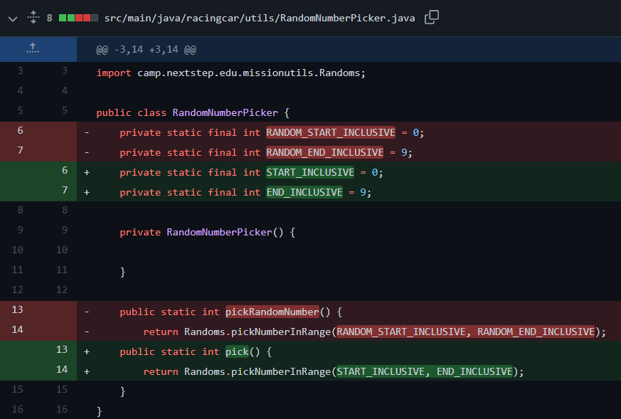 2. "공백 라인을 의미있게 사용하자"의 피드백을 적용하면 공백을 통해 상수, 클래스 변수, 인스턴스 변수를 구분할 수 있다.