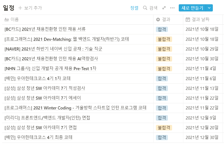 이번 막학기때는 졸업 프로젝트, 기말시험, 인턴 지원, 싸피 지원, 우테코 지원 등등 많은 일들을 한꺼번에 병행하다보니 너무 힘들면서도 정신 없는 시간을 보냈던 것 같다. 졸업 후 백수가 되는 게 무서워 내가 지원할 수 있는 것들은 다 지원해 본 것 같고 그러다 보니 오히려 하나도 제대로 하는게 없는 것 처럼 느껴지기도 했다. 그래도 내가 해야하는 모든 것들에 내 나름의 최선을 다했다고 생각하고 후회는 없다.