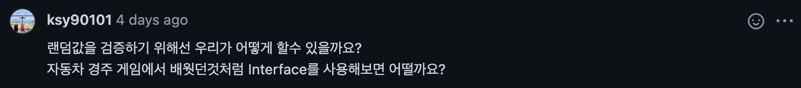 당시 자동차 경주 미션에서는 인터페이스를 사용하지 않았어서.. 어떻게 해야하는거지?? 🤔 하는 당혹스러움이 있었다.